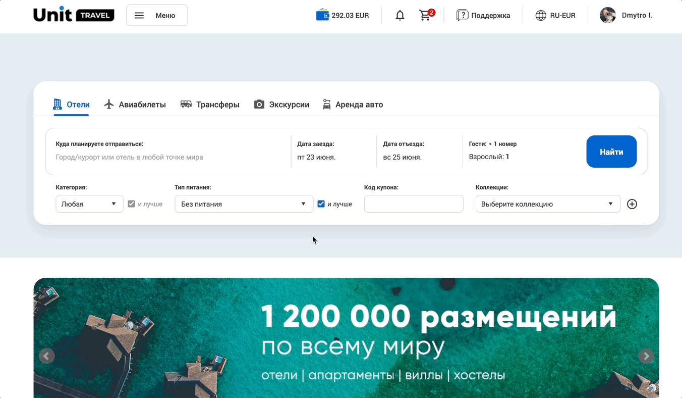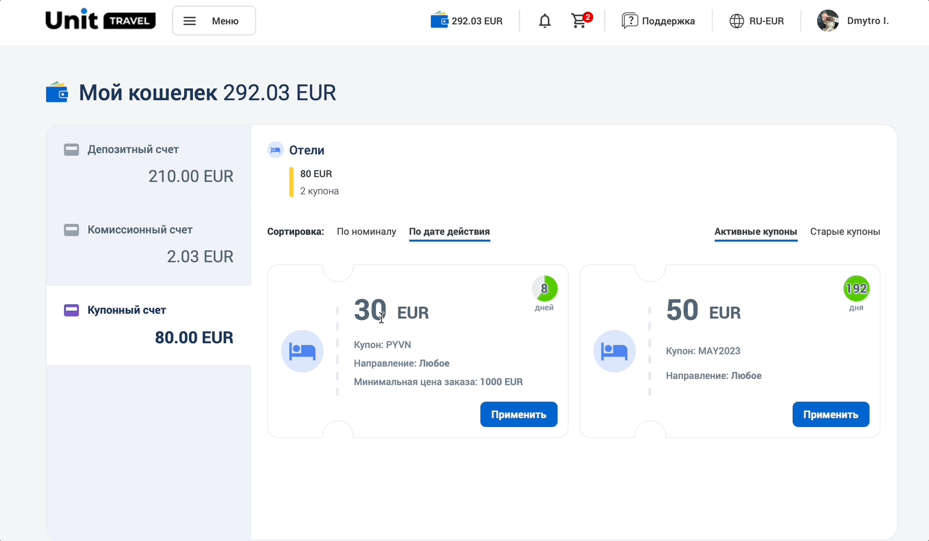 Купоны – это раздел, в котором отображаются специальные скидки от Unit Travel на отдельные продукты. Все купоны уникальны и имеют срок действия.