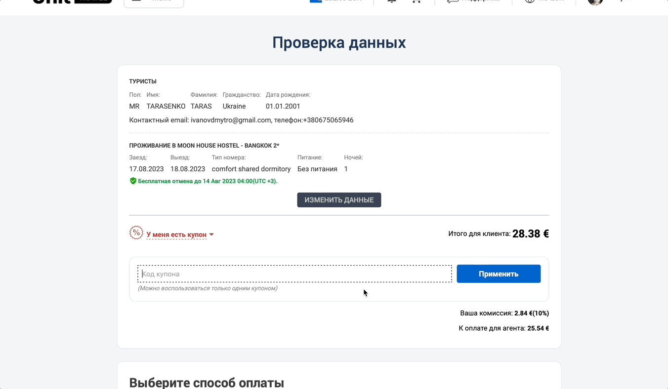 Купон можно использовать при бронировании и оплате от турагента (нетто). На этапе оплаты бронирования необходимо указать У меня есть купон и применить активный купон.